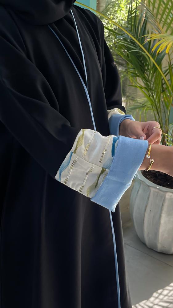 قماش كتان قصة كلوش بأكمام زخارف مبطن بلينن سماوي
